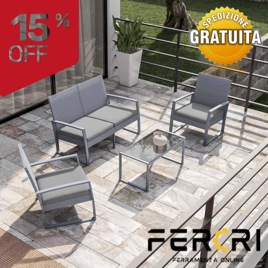 SALOTTO "SANTIAGO" PZ.4 ACCIAIO GRIGIO/MARRONE/TORTORA